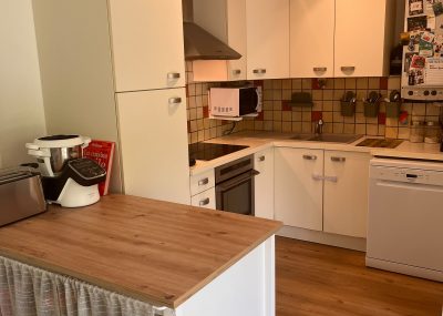 L’appartement comprend: entrée avec placards, cuisine semi-équipée, salon, chambre, SDE avec WC.