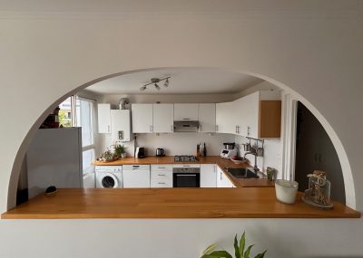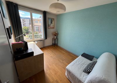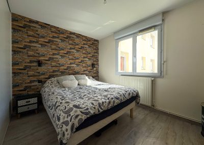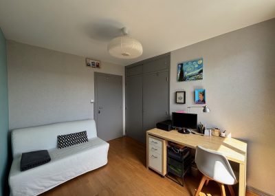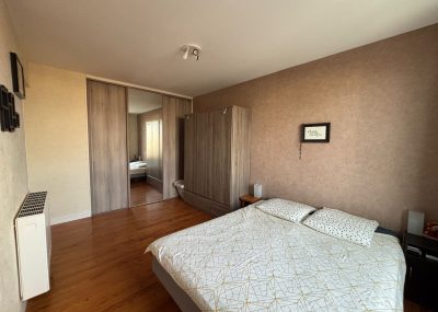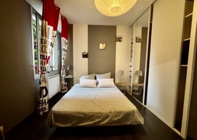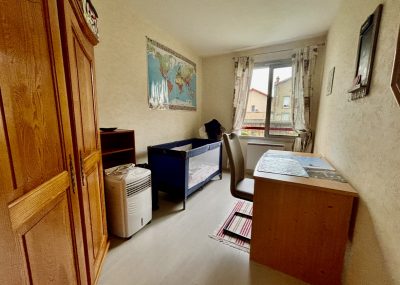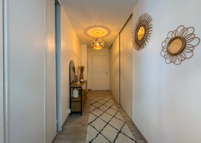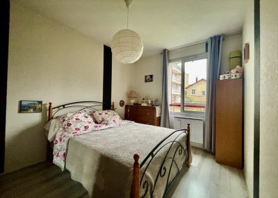 L’appartement dispose d’une entrée spacieuse, cuisine séparée et équipée, salon donnant sur balcon, salle d’eau, WC, placards, deux chambres donnant sur balcon fermé.