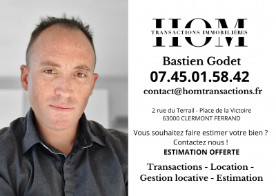 Pour plus de renseignements, contactez l’Agence HOM au 09.84.06.66.38 / www.homtransactions.fr / contact@homtransactions.fr ou Adrien REBOURG au 06.51.29.82.04.