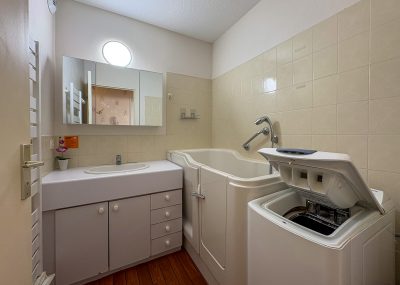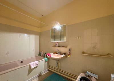 Charme de l’ancien: hauteur sous plafond + 3m, parquet fougère, radiateur en fonte, cheminée en marbre.