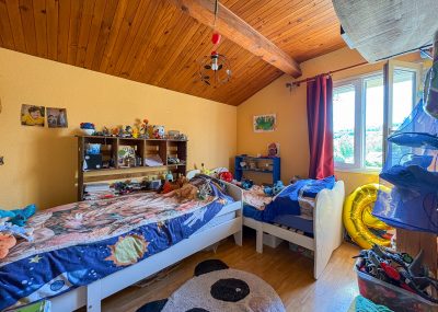 A l’étage nous retrouvons, séjour-salon, cuisine, 3 chambres, salle de bain, wc.