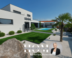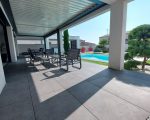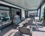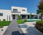Garage de 60m², abri pour 2 véhicules, atelier indépendant, 3 terrasses, cuisine d’été, jardin paysagé moderne et épuré.